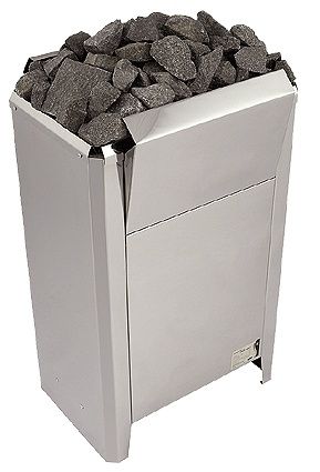 Камни, расположенные сверху печи, разогреваются до температуры парообразования, что позволяет плескать на горячие камни и наслаждаться мягким и влажным паром.