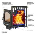 Чугунная печь для бани Везувий Легенда Ковка 22 (271) рассчитана на парные объемом от 12 до 24 м3. Топка каменки состоит из трех частей, изготовленных из литого высококачественного чугуна. Части соединены болтами, в стыки проложен керамический шнур, выдерживающий температуру до 1200°С, поэтому топка абсолютно герметична и безопасна при эксплуатации. Толщина элементов топки составляет минимум 12 мм, поэтому печь способна выдержать большие перепады температуры и не лопается при попадании большого количества воды.