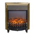 Электрический очаг с звуковым эффектом горения дров (регулируется) предназначен для встраивания в стандартные обрамления. Эффект пламени - сгоревшие дрова. Черная решетка имитирует колосниковую решетку настоящего дровяного камина. Два варианта рамки вокруг очага: черная или золотая. Нагреватель с поддувом спрятан в козырьке очага и обеспечивает обогрев в холодную погоду. Переключатель позволяет включать на полную или половинную мощность.
