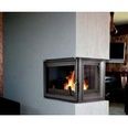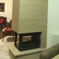 Туннельная (сквозная) топка встраивается в торец межкомнатной перегородки так, чтобы можно было любоваться пламенем с трёх сторон.